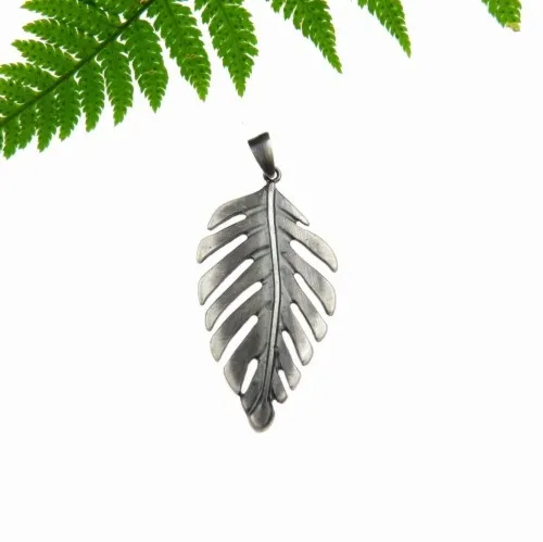 Liść palmy duży grafitowy- kolczyki srebrne