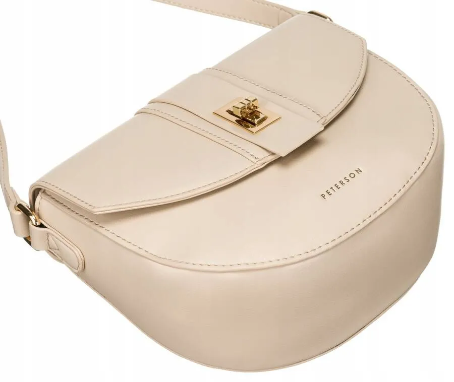 Mała, zgrabna torebka listonoszka wykonana ze skóry ekologicznej. Środek na materiałowej podszewce. Torebka dwukomorowa, wyposażona w 3 dodatkowe kieszonki. Torebka zawieszona na solidnym, długim pasku na ramię i uchwycie.