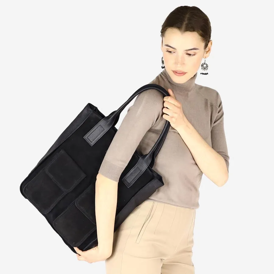 Shopperka zamszowa skórzana MARCO MAZZINI czarna s131aa