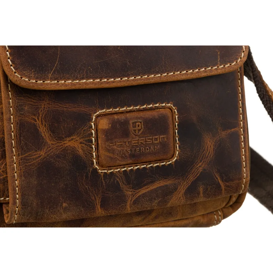 Mała listonoszka męska w brązowym kolorze wykonana ze skóry naturalnej PTN PR-99-TMH Peterson