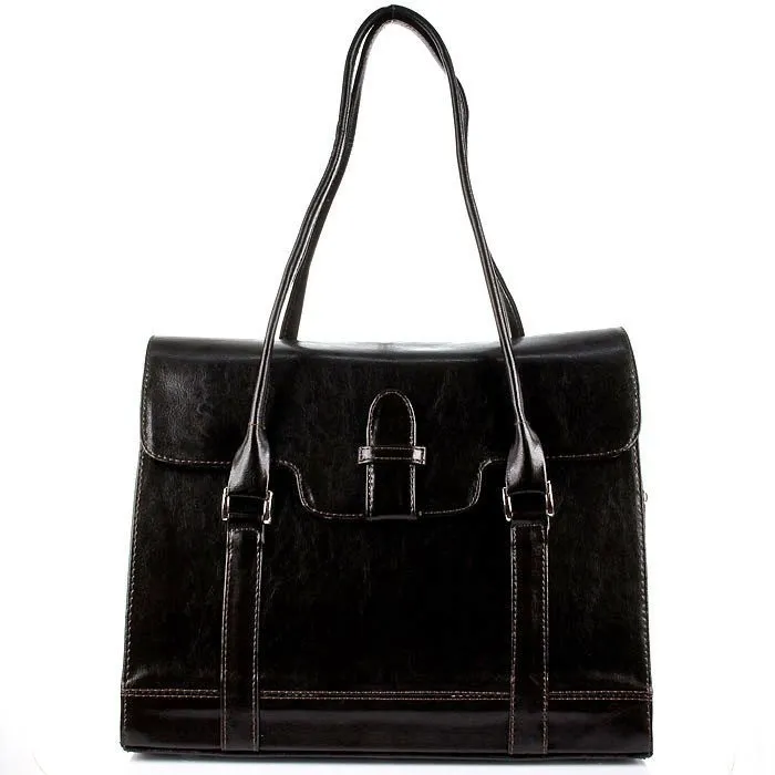 Torebko-portfel z wysokiej jakości skóry eko. W tym modelu znajdują się przegródki na karty płatnicze lub dokumenty wielkości karty. Z przodu kieszonka na telefon zapinana na zatrzask. Torebka wyposażona w długi odpinany pasek.