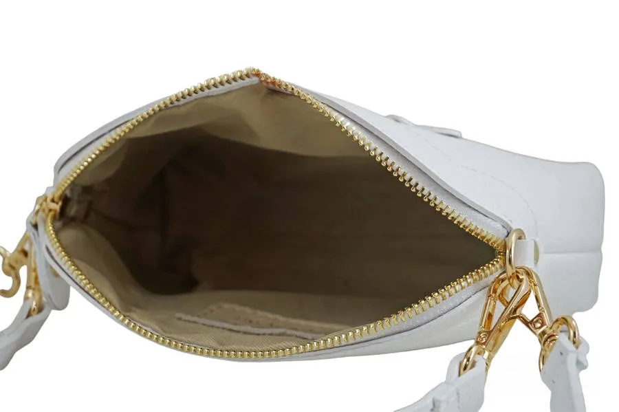 Mała torebka wizytowa skórzana w kolorze chabrowym została wykonana ze skóry naturalnej licowej. Klasyczny fason urozmaicony złotymi ozdobami mocowanymi na doszytym elemencie skórzanym, z przodu torebki, wyróżnia ten model listonoszki, która podkreśli stylizacje zarówno codzienne swobodne, jak również na wyjątkowe okazje. Dostępna w najnowszej kolekcji, w szerokiej palecie kolorów, mała torebka wizytowa skórzana będzie idealna dla osób, którym zależy na niewielkich gabarytowo, aczkolwiek pojemnych i jednocześnie stylowych torebkach ze skóry naturalnej. Dzięki klasycznemu i stonowanemu wzornictwu dopasujesz torebkę zarówno do eleganckich sukienek lub spodni oraz do dżinsów i skórzanych sandałków. Zapoznaj się z najnowszą ofertą torebek skórzanych dostępnych w naszym sklepie – listonoszek, klasycznych lub wygodnych plecaków oraz portfeli. Oferujemy duży wybór produktów galanterii skórzanej Dla Niej i Dla Niego.