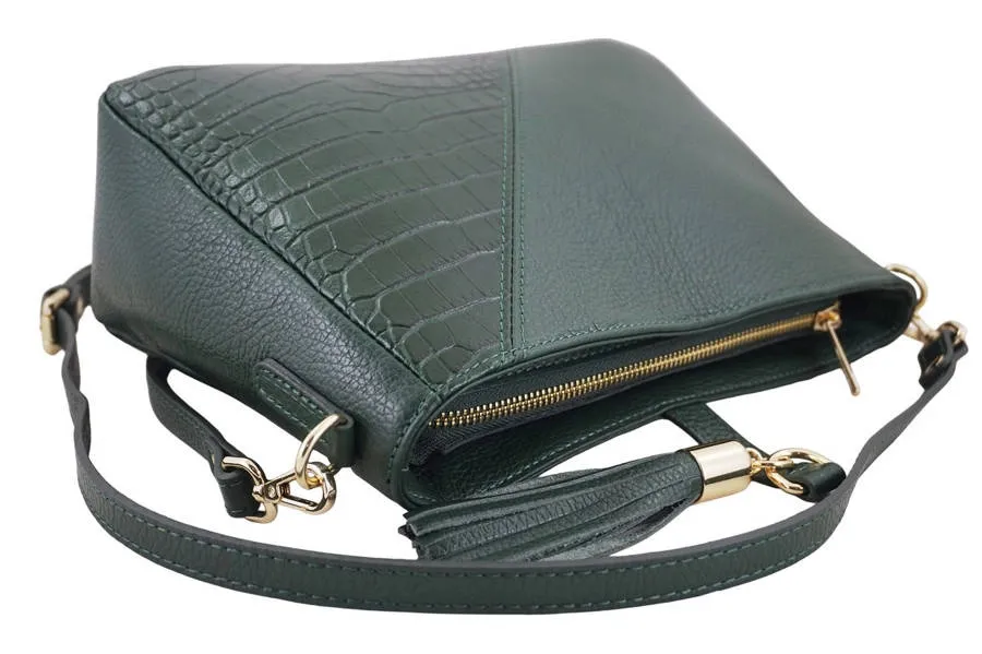 Wnętrze torebki: jednokomorowe wnętrze jest wykończone podszewką. Wewnątrz znajduje się mała zasuwana kieszonka oraz miejsce na telefon. Z tyłu wyodrębniono poręczną zasuwaną kieszeń umożliwiającą szybki dostęp do portfela lub kluczy. Stylowe torebki skórzane z ozdobnym frędzlem są zasuwane, posiadają złote okucia oraz dopinany pasek z pięciostopniową regulacją (maksymalna dł. 115cm, maksymalna wys. 58cm, szerokość paska 1,5cm). Klasyczny fason zwraca uwagę modnym zwierzęcym printem, długim frędzelkiem na skórzanym pasku, a także piękną stonowaną kolorystyką oraz solidnym wykonaniem z materiału najwyższej jakości.
