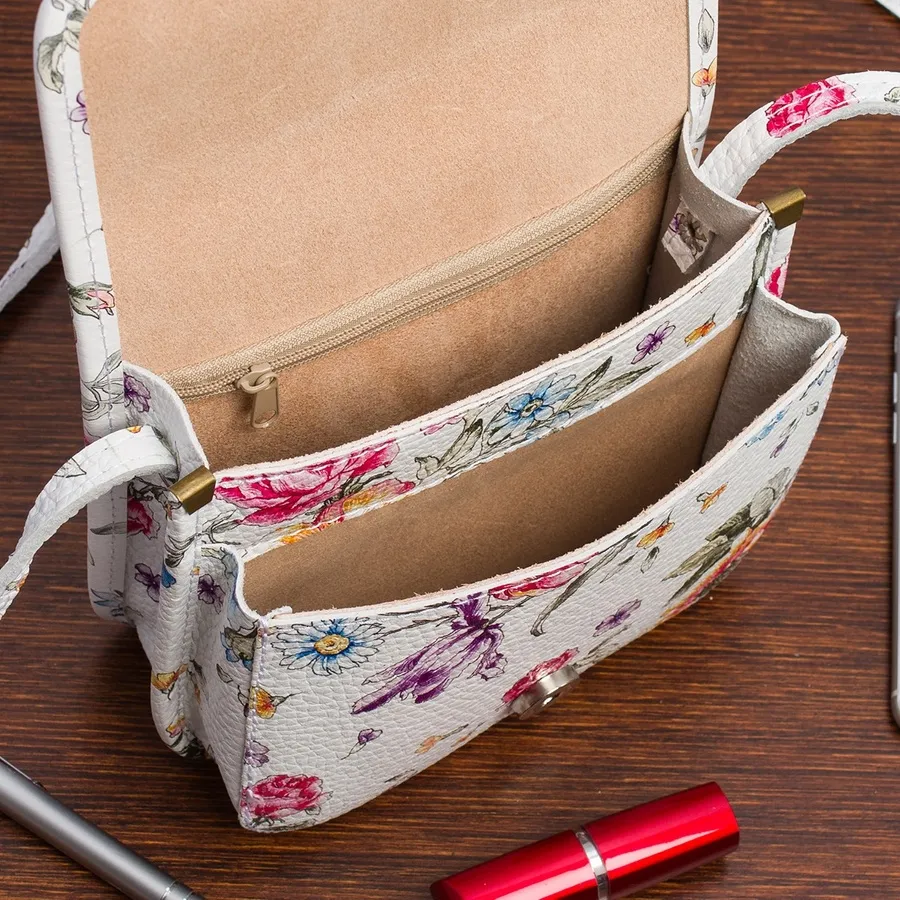 Listonoszka skórzana BELTIMORE K66 biała kwiaty