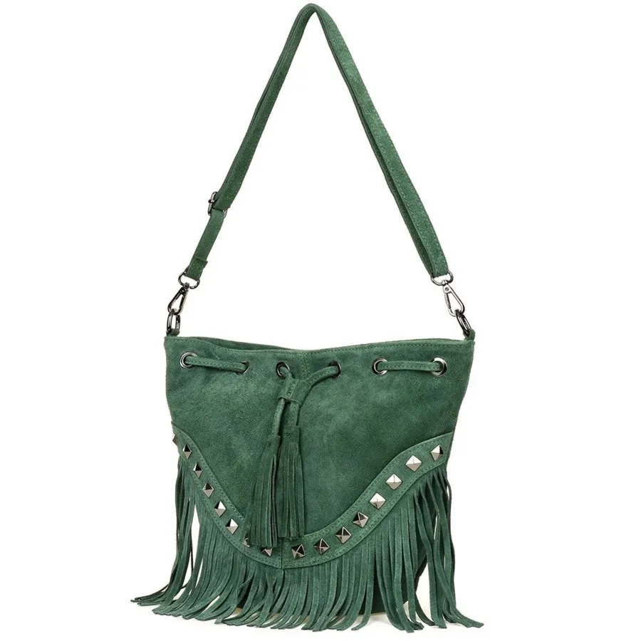 Ta mała torebka to wyjątkowy dodatek, który łączy w sobie zarówno funkcjonalność, jak i styl. Wykonana z wysokiej jakości zamszu, który jest naturalną skórą, zapewnia trwałość i elegancję. Jej unikalny design w formie listonoszki sprawia, że jest praktyczna i wygodna w użytkowaniu. Na froncie torebki znajdują się efektowne frędzle, które nadają jej niepowtarzalny, modny wygląd. Dodają także subtelnego ruchu i elegancji. Regulowany pasek pozwala dostosować długość torebki do swoich potrzeb i preferencji, co jest wygodne w codziennym noszeniu. Ta zamszowa torebka to doskonały wybór na wieczorne wyjścia, uroczystości czy spotkania biznesowe. Dzięki swojej elegancji i wyrafinowanemu designowi idealnie uzupełni różnorodne stylizacje. Jej praktyczne rozmiary pozwalają na zabranie najważniejszych drobiazgów, jednocześnie zachowując schludny i minimalistyczny wygląd. Warto zaznaczyć, że ze względu na materiał zamszowy, zaleca się zachowanie ostrożności w przypadku kontaktu z wilgocią, aby zachować piękno i trwałość tego wyjątkowego akcesorium.