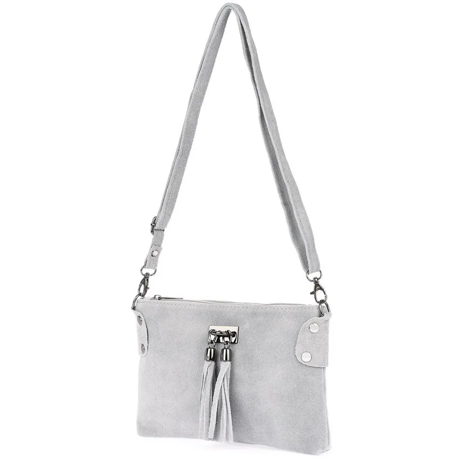 Ta mała torebka to wyjątkowy dodatek, który łączy w sobie zarówno funkcjonalność, jak i styl. Wykonana z wysokiej jakości zamszu, który jest naturalną skórą, zapewnia trwałość i elegancję. Jej unikalny design w formie listonoszki sprawia, że jest praktyczna i wygodna w użytkowaniu. Na froncie torebki znajdują się efektowne frędzle, które nadają jej niepowtarzalny, modny wygląd. Dodają także subtelnego ruchu i elegancji. Regulowany pasek pozwala dostosować długość torebki do swoich potrzeb i preferencji, co jest wygodne w codziennym noszeniu. Ta zamszowa torebka to doskonały wybór na wieczorne wyjścia, uroczystości czy spotkania biznesowe. Dzięki swojej elegancji i wyrafinowanemu designowi idealnie uzupełni różnorodne stylizacje. Jej praktyczne rozmiary pozwalają na zabranie najważniejszych drobiazgów, jednocześnie zachowując schludny i minimalistyczny wygląd. Warto zaznaczyć, że ze względu na materiał zamszowy, zaleca się zachowanie ostrożności w przypadku kontaktu z wilgocią, aby zachować piękno i trwałość tego wyjątkowego akcesorium.