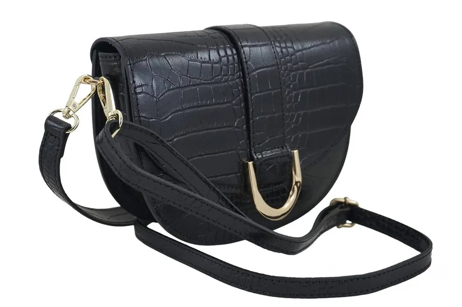Listonoszka skórzana croco BARBERINI'S czarna 971-12