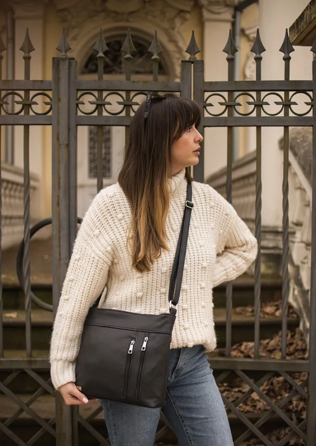 Listonoszka wykonana ze skóry naturalnej . Wewnątrz posiada jedną komorę i dwie kieszonki – jedną na zamek, drugą otwartą. Wymiary: wysokość – 21 cm szerokość – 28,5 cm głębokość -11 cm długość paska – 140 cm
