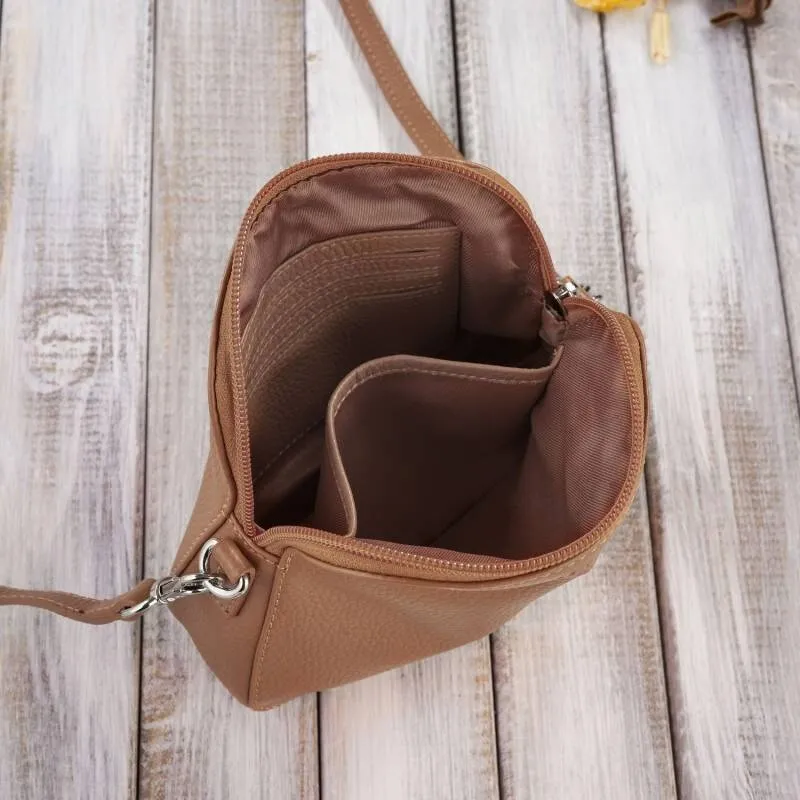 Torebka IN-61 posiada jedną, główną komorę zamykaną na suwak błyskawiczny. Wnętrze torebki zostało wykończone solidną podszewką. Na obu bokach torebki wewnątrz znajdują się dwie kieszenie. Jedna kieszeń wsuwka wykończona lamówką ze skóry naturalnej. Druga kieszeń wykonana została ze skóry naturalnej z 3 miejscami na karty kredytowe lub wizytówki. Całość posiada odczepiany skórzany pasek na ramię z regulacją. Nietuzinkowy odcień różu pozwoli stworzyć z torebką ciekawą i niebanalną stylizację! Uniwersalny kolor koniakowy torebki pozwoli dopasować ją do stylizacji zimowo-jesiennych, jak i również sprawdzi się przy stylizacjach wiosenno-letnich. Charakterystyka: model: IN-61 materiał: skóra naturalna groszkowa ilość komór: 1 ilość kieszeni: 3 zapięcie: suwak format A4: nie Wymiary: wysokość: 15,5 cm szerokość: 16,5 cm głębokość: 4,5 cm maksymalna długość paska: 135 cm