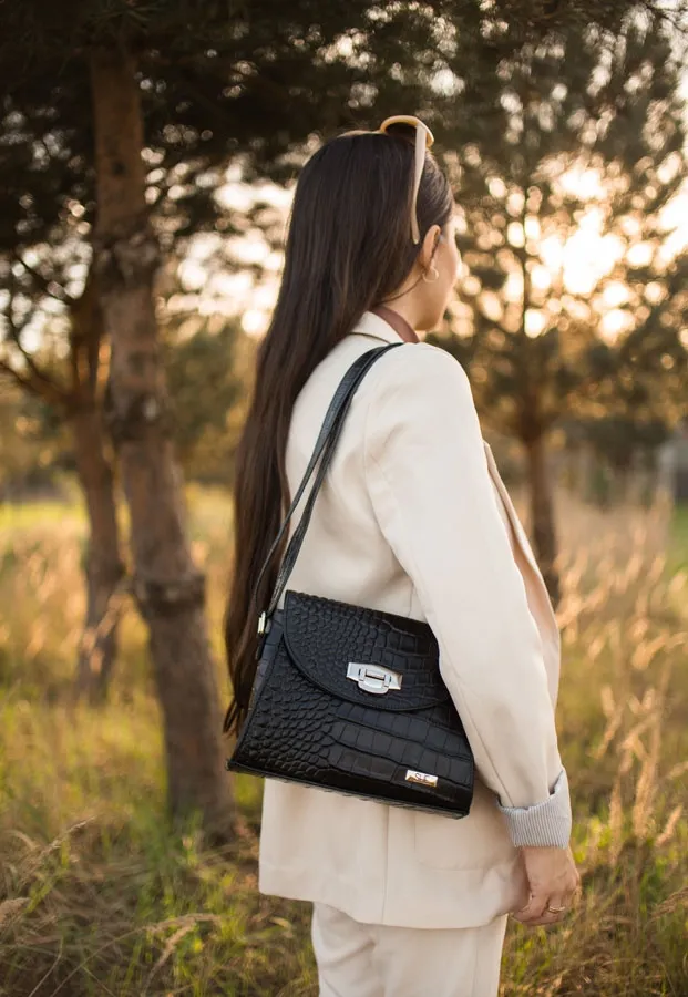 Listonoszka skórzana SHE 685w czarny krokodyl