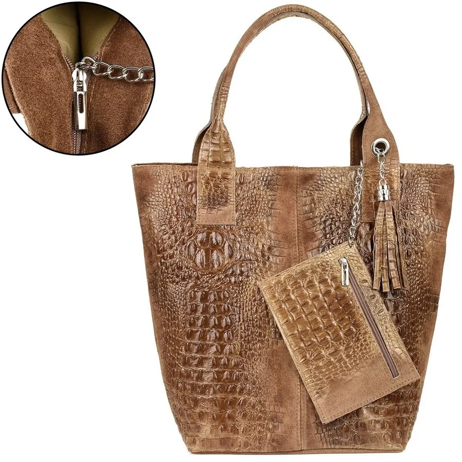 Shopperka skórzana zamszowa MARCO MAZZINI c. brązowa s131cc
