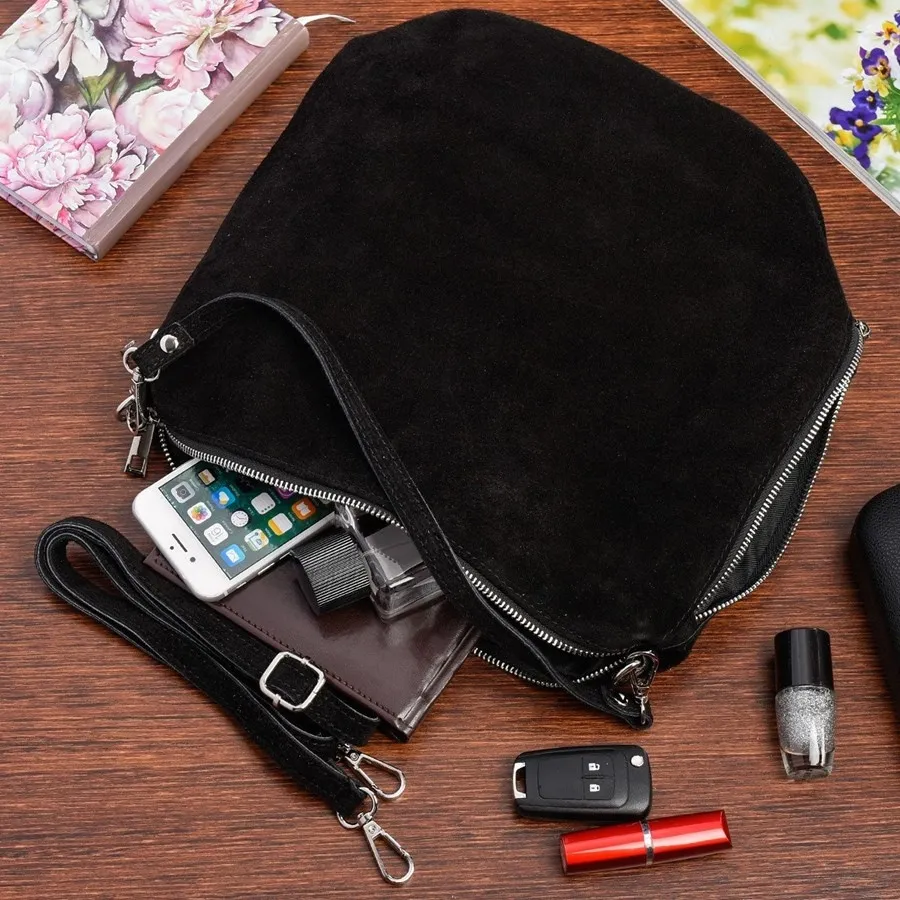 Skórzana listonoszka wyprodukowana we Włoszech z najwyższej jakości zamszowej skóry naturalnej! To elegancka i uniwersalna torebka, idealna na co dzień – zarówno do pracy, jak i na weekendowe wyjścia.Torebka posiada jedną, główną komorę a w środku mała kieszonka na suwak oraz oddzielna przegródka na telefon.
