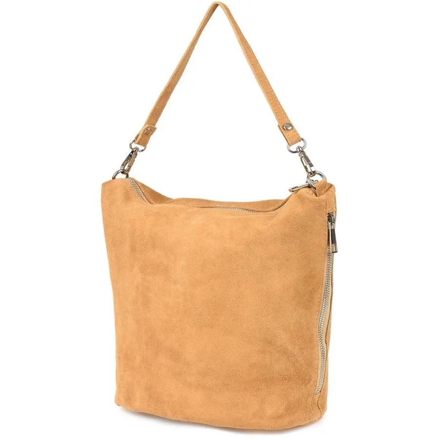 Skórzana listonoszka wyprodukowana we Włoszech z najwyższej jakości zamszowej skóry naturalnej! To elegancka i uniwersalna torebka, idealna na co dzień – zarówno do pracy, jak i na weekendowe wyjścia.Torebka posiada jedną, główną komorę a w środku mała kieszonka na suwak oraz oddzielna przegródka na telefon.
