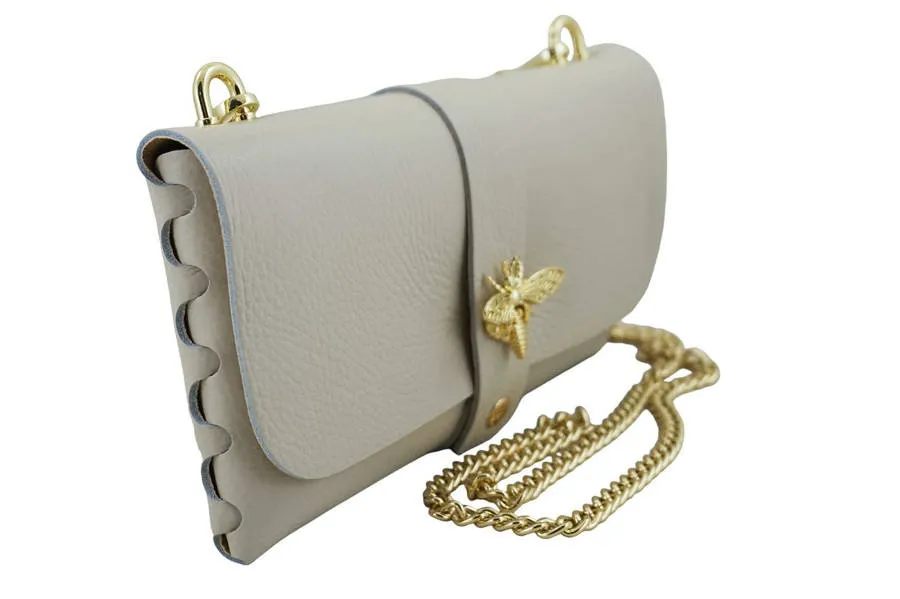 Torebki kopertówki na łańcuszku w kolorze beżowym zostały wykonane z naturalnej skóry licowej. Dostępne w najnowszej ofercie, w kategorii LISTONOSZKI, modne torebki kopertówki na złotym łańcuszku to idealny dodatek eleganckiej garderoby. Uniwersalny fason urozmaicony złotymi dodatkami oraz ozdobnie plecioną skórą z obu stron torebki, rozmiarowo idealny aby pomieścić niezbędne rzeczy – telefon, portfel oraz drobne kosmetyki. Nowoczesny design oraz wysokiej jakości skóra naturalna wyróżniają ten model torebki, która będzie idealnym uzupełnieniem stylizacji na spotkanie z przyjaciółmi. Chcesz być informowana o nowej kolekcji, uzupełnieniu magazynowym lub aktualnych promocjach? Zapisz się do naszego newslettera – wraz z informacją o najnowszej kolekcji otrzymasz rabat -15% na zakupy. Skorzystaj z oferty naszego sklepu – gwarantujemy wysoką jakość produktów, solidne wykonanie oraz duży wybór modeli torebek oraz portfeli.