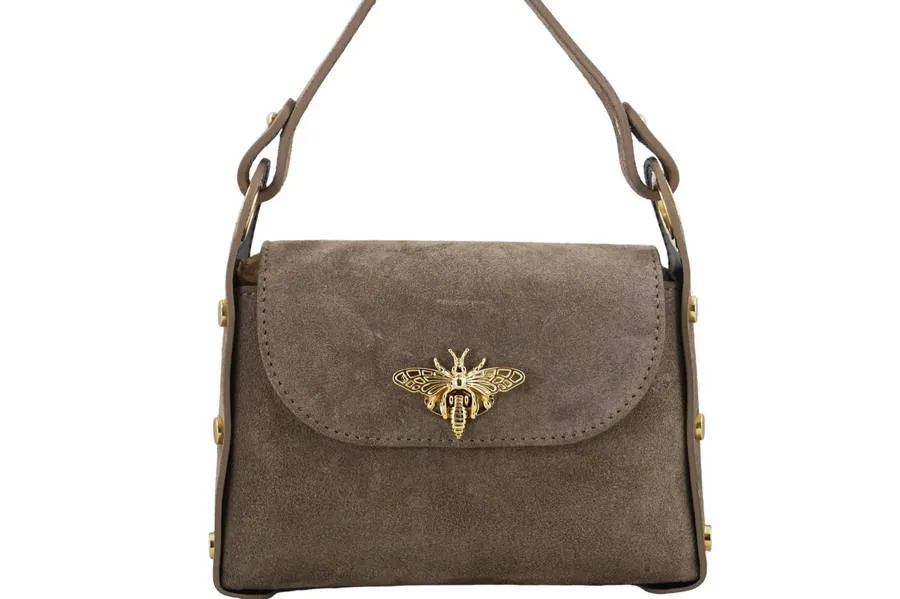 Wnętrze torebki: modne zamszowe torebki wizytowe z ozdobnym zapięciem oraz złotymi nitami są jednokomorowe, surowo wykończone. Posiadają złote okucia, krótki uchwyt do ręki (długość 25cm, wysokość 11cm, szerokość 1,8cm) oraz doczepiany złoty łańcuszek (długość 110cm, wysokość 58cm). Uniwersalny fason, rozmiarowo idealny aby pomieścić niezbędne rzeczy – telefon, portfel oraz drobne kosmetyki. Wyjątkowe zamszowe torebki wizytowe są dostępne w szerokiej palecie kolorów – wybierz idealny dla Ciebie i wyróżnij stylizację torebką z naszego sklepu – w najnowszej kolekcji znajdziesz wiele modeli torebek skórzanych, plecaków oraz torebek klasycznych.