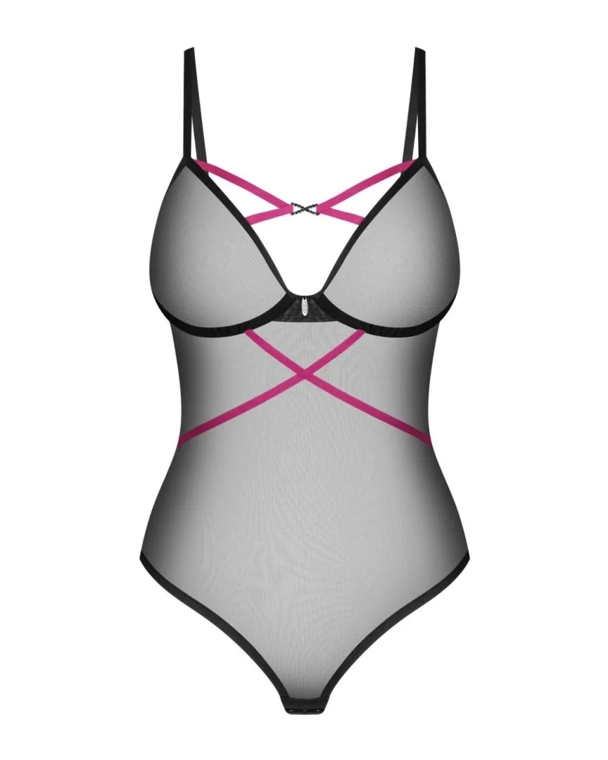 Body w czarnym kolorze z koronkowymi detalami. Elastyczna i miła w dotyku tkanina zapewnia świetne dopasowanie. Seksowny minimalizm, który doskonale sprawdzi się podczas spotkania we dwoje. – body w czarnym kolorze – elegancka koronka – srebrna zawieszka – możliwość regulacji ramiączek – wiązanie na plecach – 85% poliamid, 15% elastan – zaprojektowano w UE – bez zawartości niklu