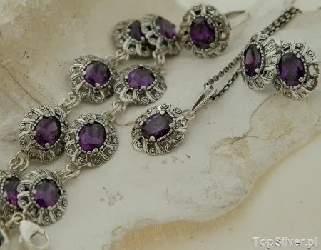 INGRID - srebrny komplet z ametystem