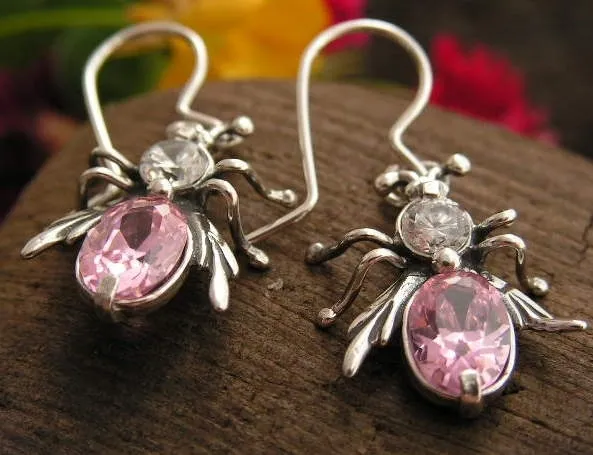 WŁADCA MUCH - srebrne kolczyki z różowym kryształe