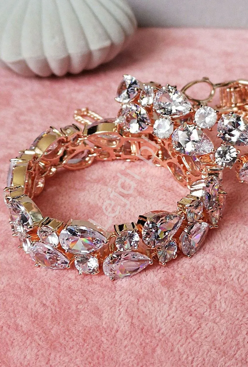 Bransoletka ślubna z kryształkami, złote okucie