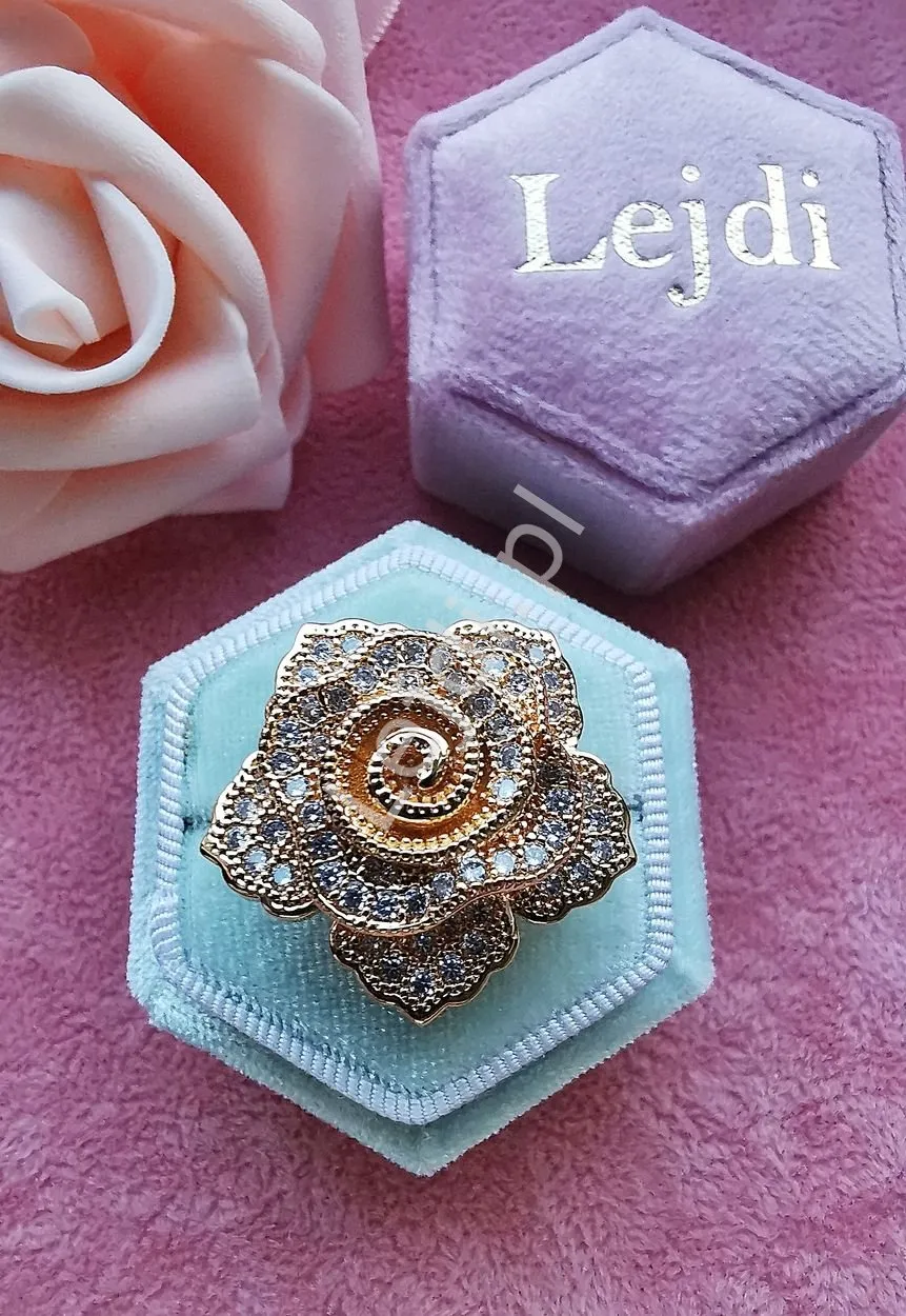 Pierścionek z dużym kwiatem z cyrkoniami w kolorze złotym