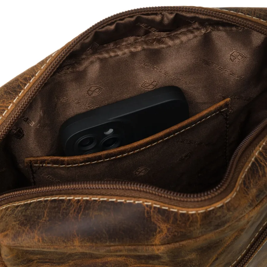 Listonoszka męska vintage ze skóry naturalnej w brązowym kolorze wyposażona w kieszonkę na telefon PTN JANNIS-TMH Peterson
