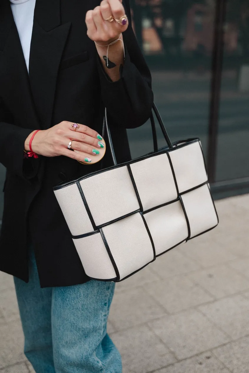 Torebka z odpinanym paskiem i małą rączką, wykonana ze skóry naturalnej tłoczonej w motyw krokodyla.