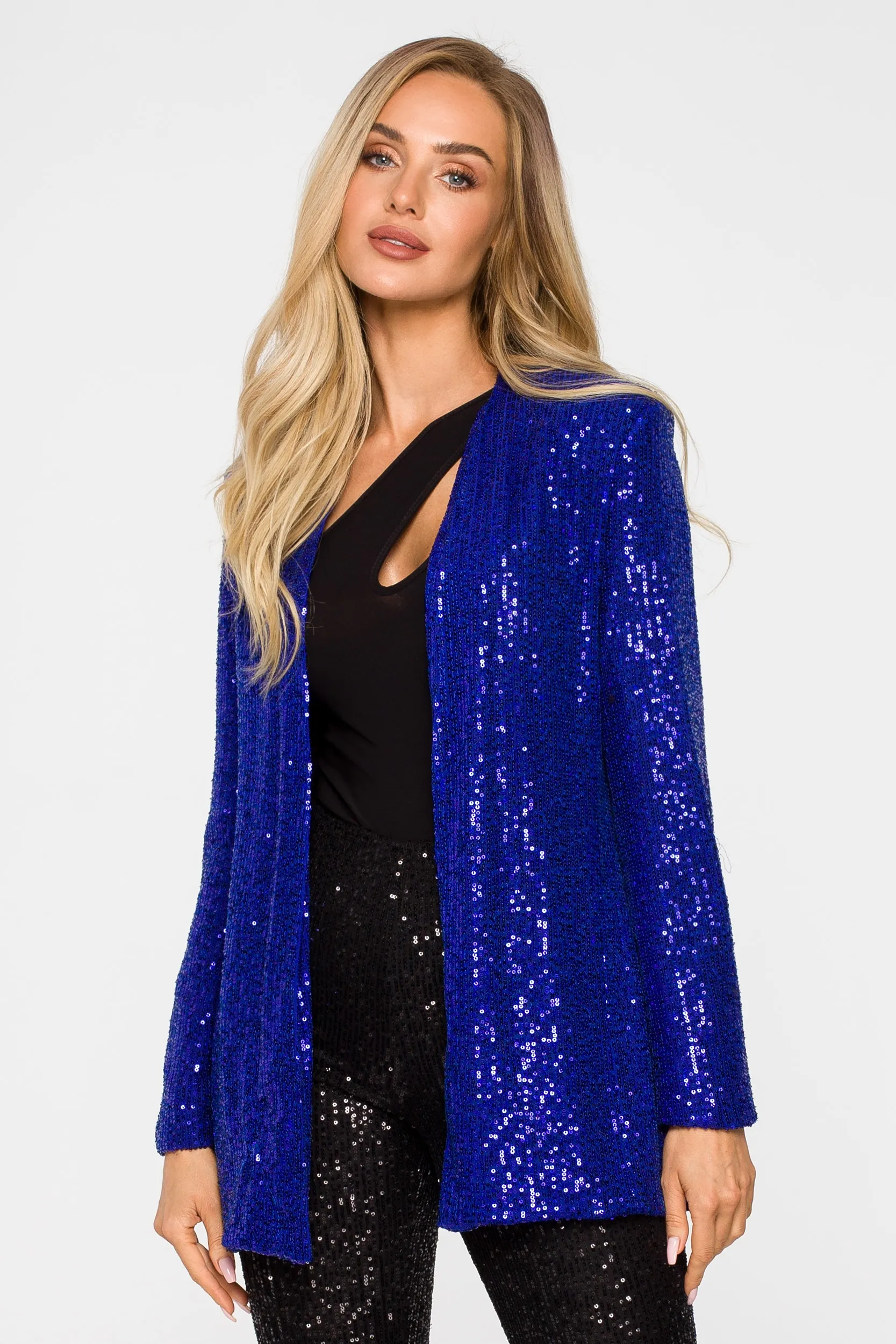 Marynarka bez zapięcia z cekinami – chabrowa - Rozmiar: M