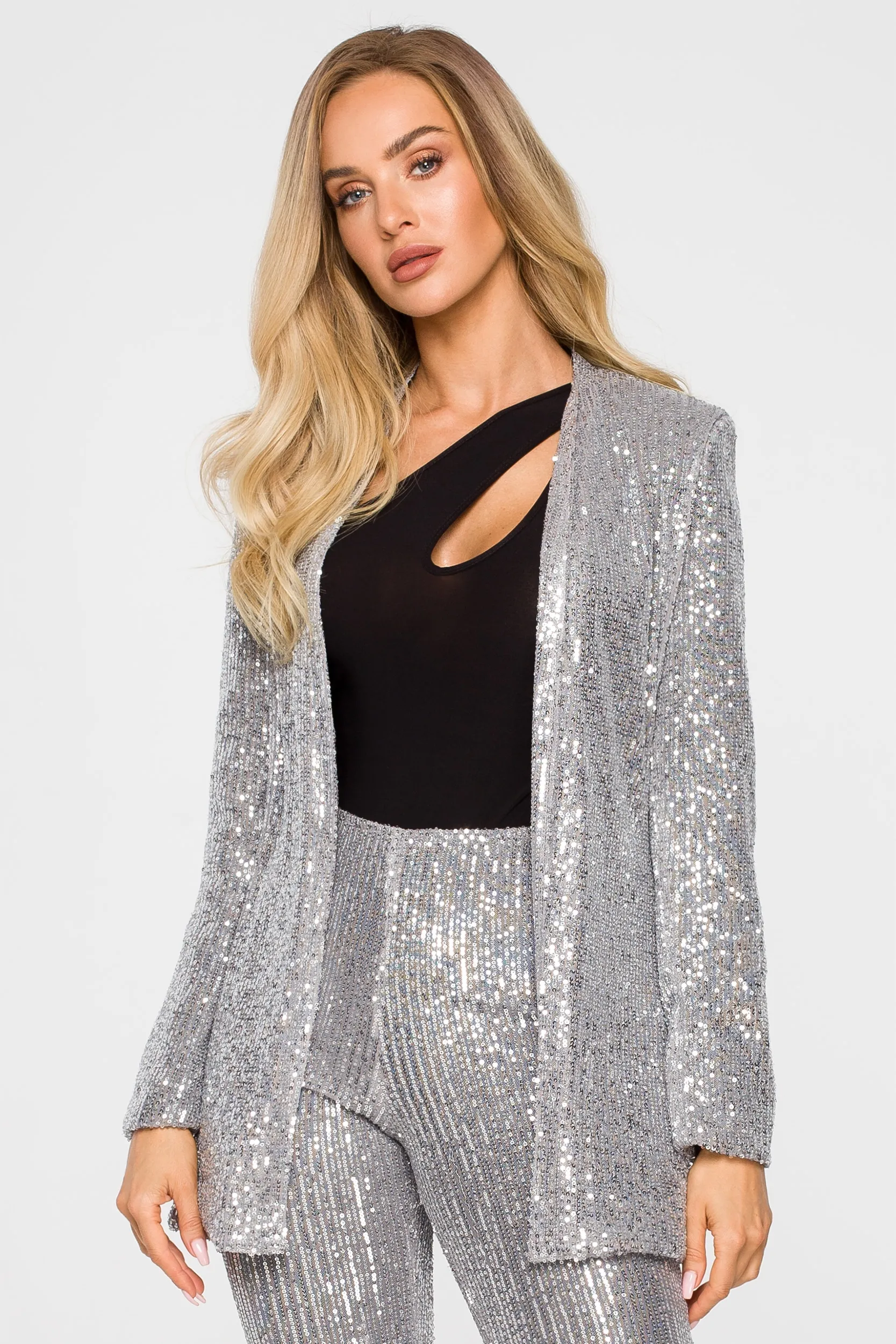 Marynarka bez zapięcia z cekinami – srebrna - Rozmiar: L