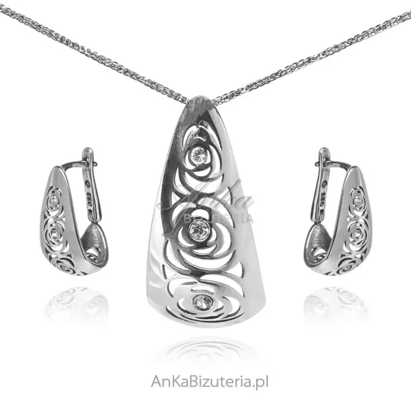 Komplet biżuteria srebrna - "różane marzenie"