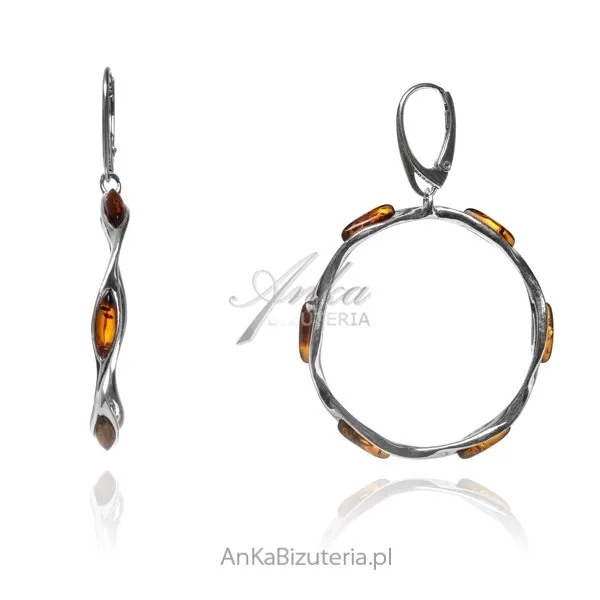Srebrne kolczyki z bursztynem - piękne koła na angielskim zapięciu