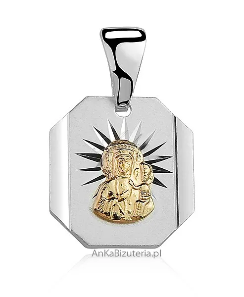 Medalik matka boska częstochowska -srebrny, pozłacany.