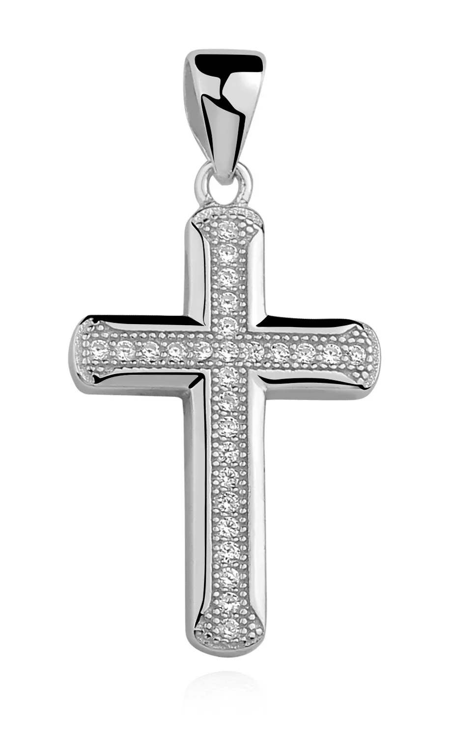 Krzyżyk srebrny z cyrkoniami - microsetting
