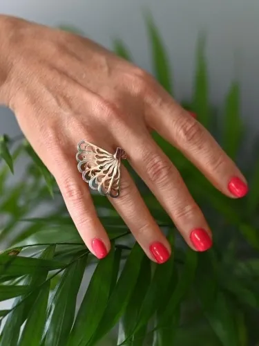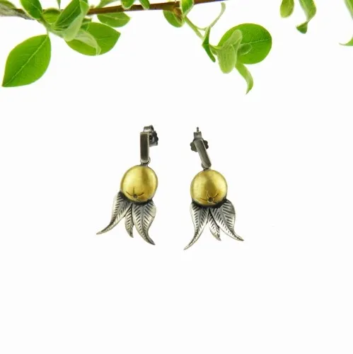 Niezwykły naszyjnik o geometrycznej formie wykonany ze srebra próby 925, następnie pokryty 24 karatowym złotem. Szerokość geometrycznego elementu 6,5 cm na 4 cm. Całkowita długość 48 cm. Waga: 14,7 gr.