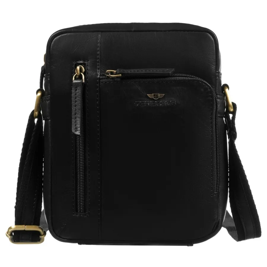 Elegancka, czarna listonoszka męska ze skóry naturalnej z zewnętrzną kieszonką na suwak PTN YP002-TUM Peterson