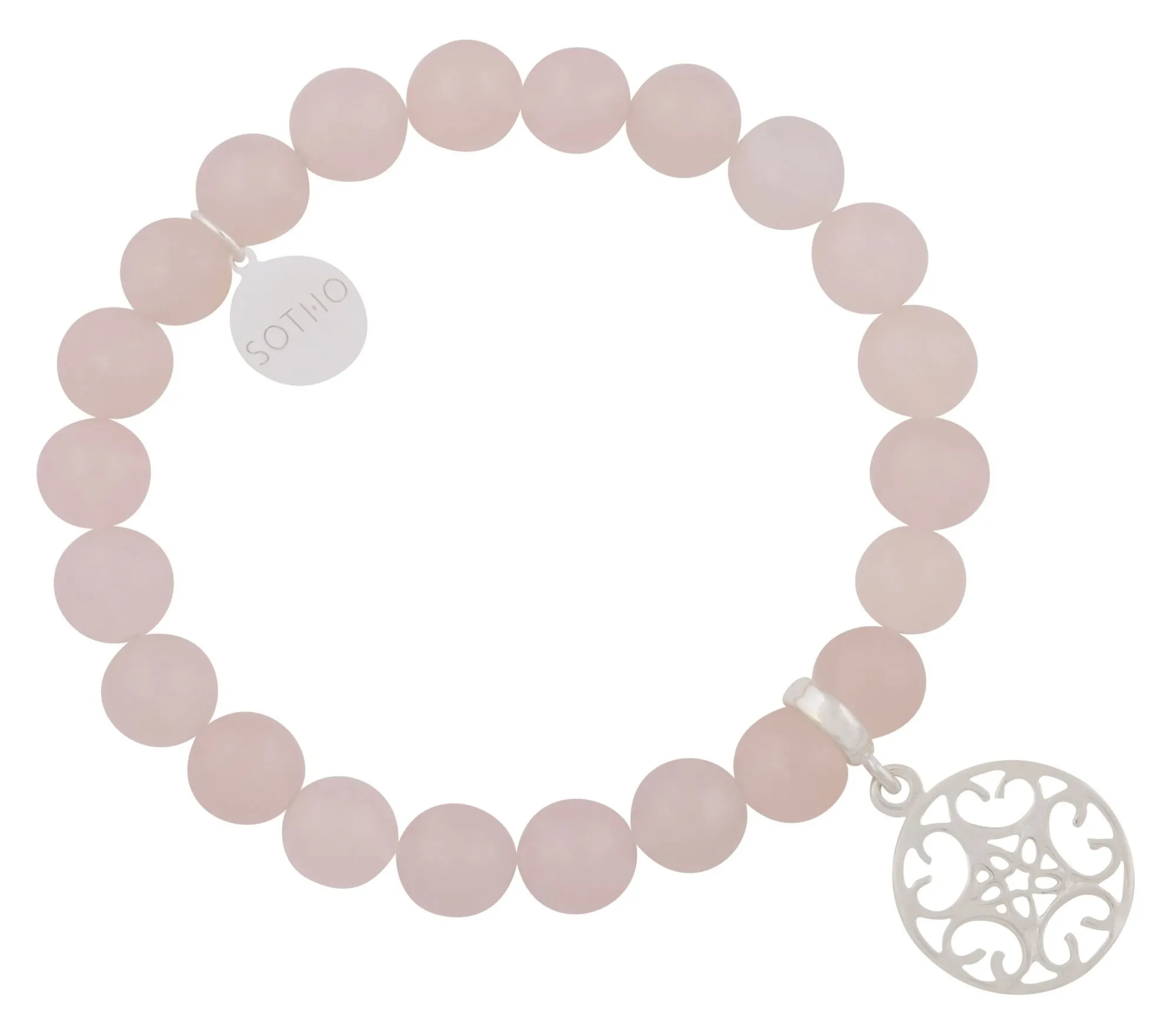 Bransoletka bladoróżowy jadeit ze srebrną arabską rozetą