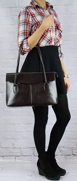 Torebko-portfel z wysokiej jakości skóry eko. W tym modelu znajdują się przegródki na karty płatnicze lub dokumenty wielkości karty. Z przodu kieszonka na telefon zapinana na zatrzask. Torebka wyposażona w długi odpinany pasek.