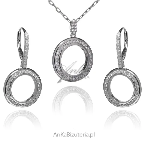 Komplet biżuteria srebrna z cyrkoniami kółka