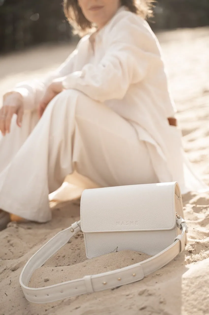 WONDER BAG - skórzana torebka - ecru - groszkowa - złote okucia