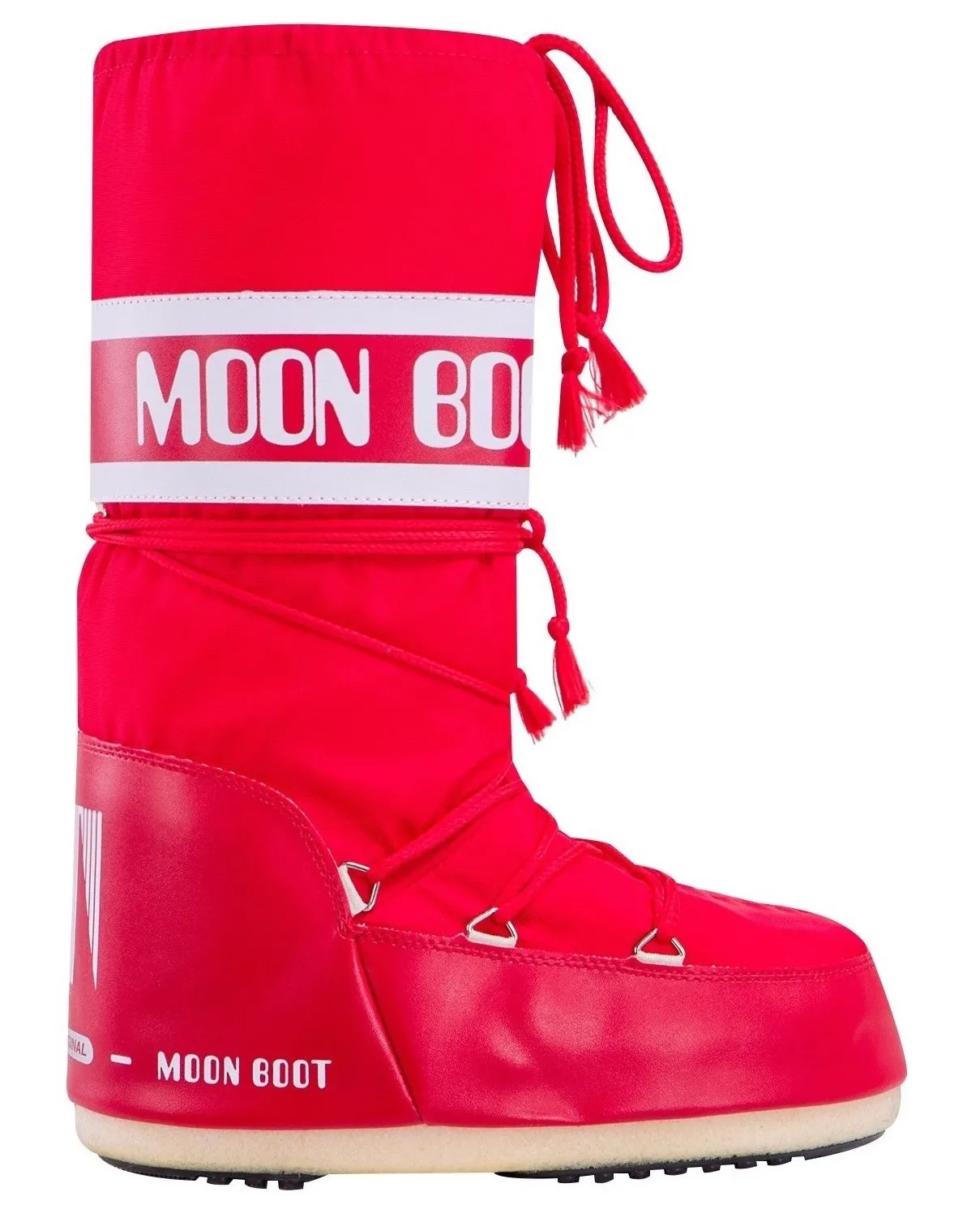 Klasyczny Moon Boot, model Nylon z matowego materiału w kolorze czarnym. Cholewka wykonana z tworzywa sztucznego, izoluje stopę przed zimnem. Wnętrze buta wyścielone zostało z miękkiego materiału, który idealnie dopasowuje się do stopy. Zakładanie oraz zdejmowanie buta ułatwiają dwie pary sznurowadeł. Buty zostały wyposażone w antypoślizgową podeszwę ułatwiającą chodzenie i utrzymującą stabilność na każdej powierzchniach. Wygoda i komfort, a za razem niepowtarzalny look. Materiał: 100% nylon Podeszwa: 100% kauczuk