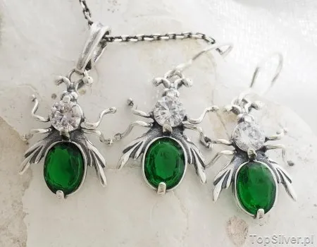 VINCOLA - srebrny komplet z onyksem i kryształki