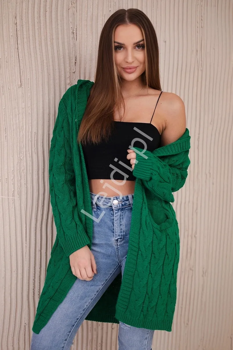 Narzutka damska z kapturem. Nie zapinany kardigan bawełniany w kolorze brzoskwiniowym. Piękna bluza z kapturem, na wiosnę, jesień.