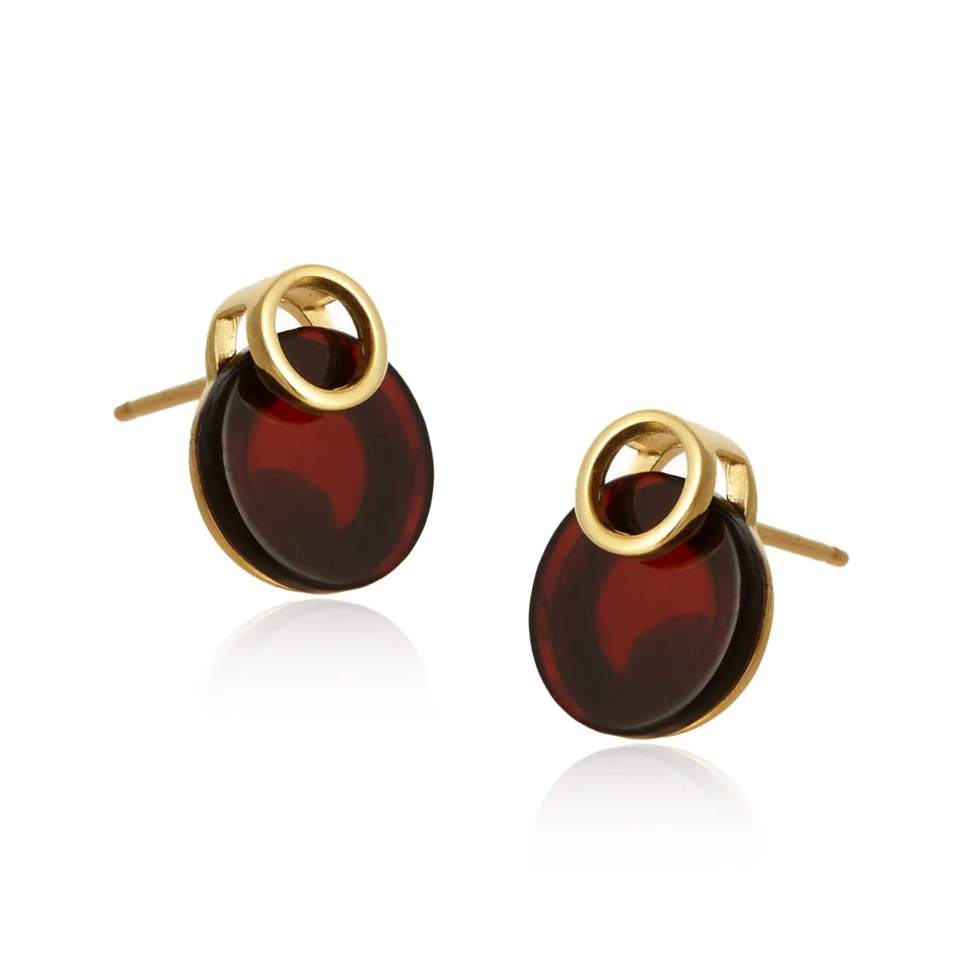 Kolczyki srebrne z wiśniowym bursztynem - bursztyn bałtycki w nowoczesnej formie