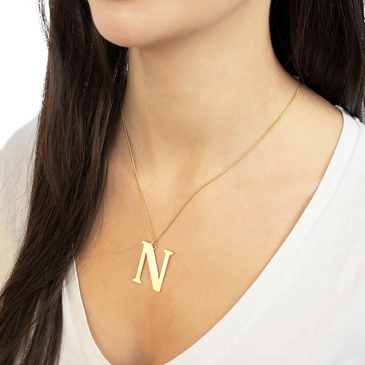 NASZYJNIK damski POZŁACANY 24k litera N duża