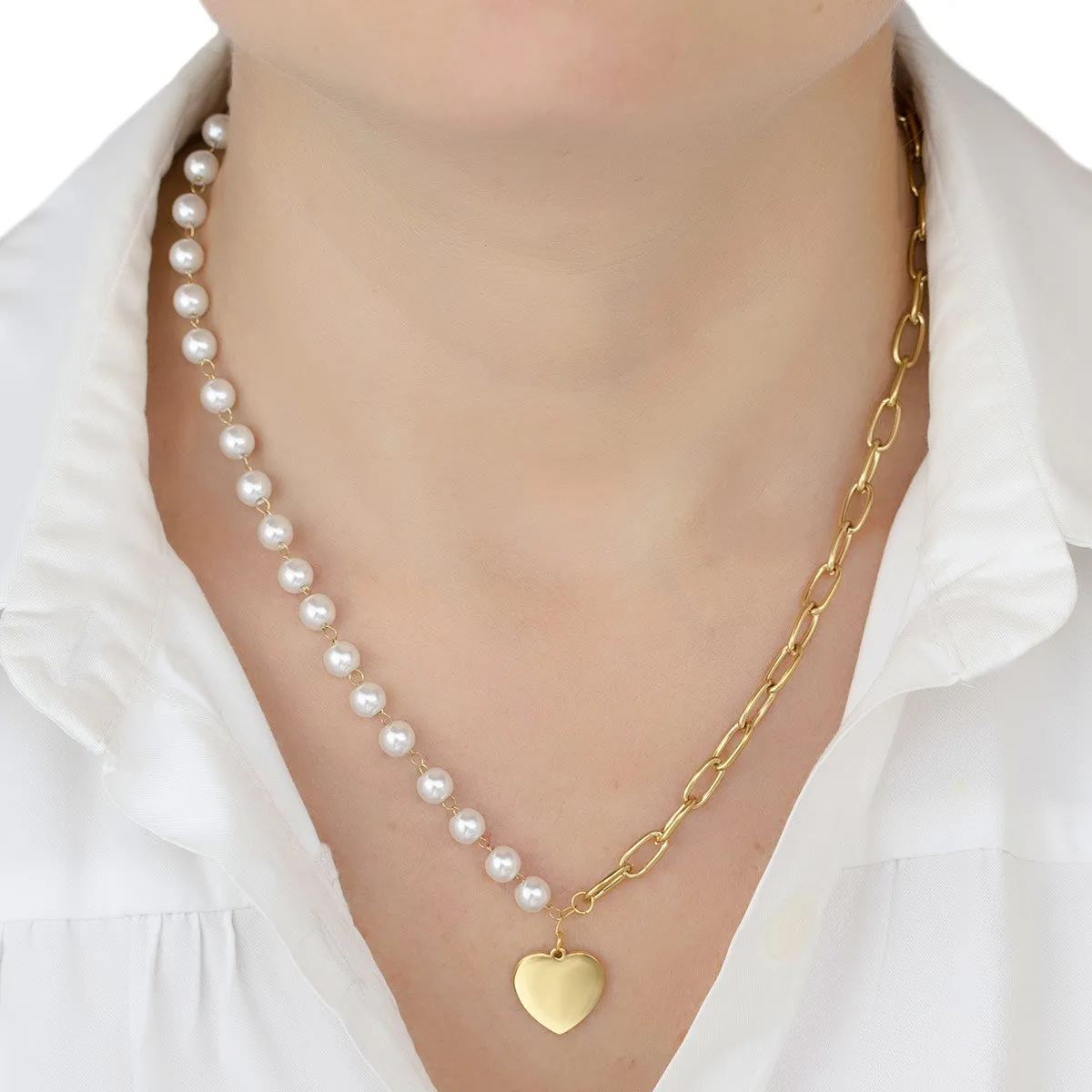 Naszyjnik serce STAL SZLACHETNA POZŁACANA perły
