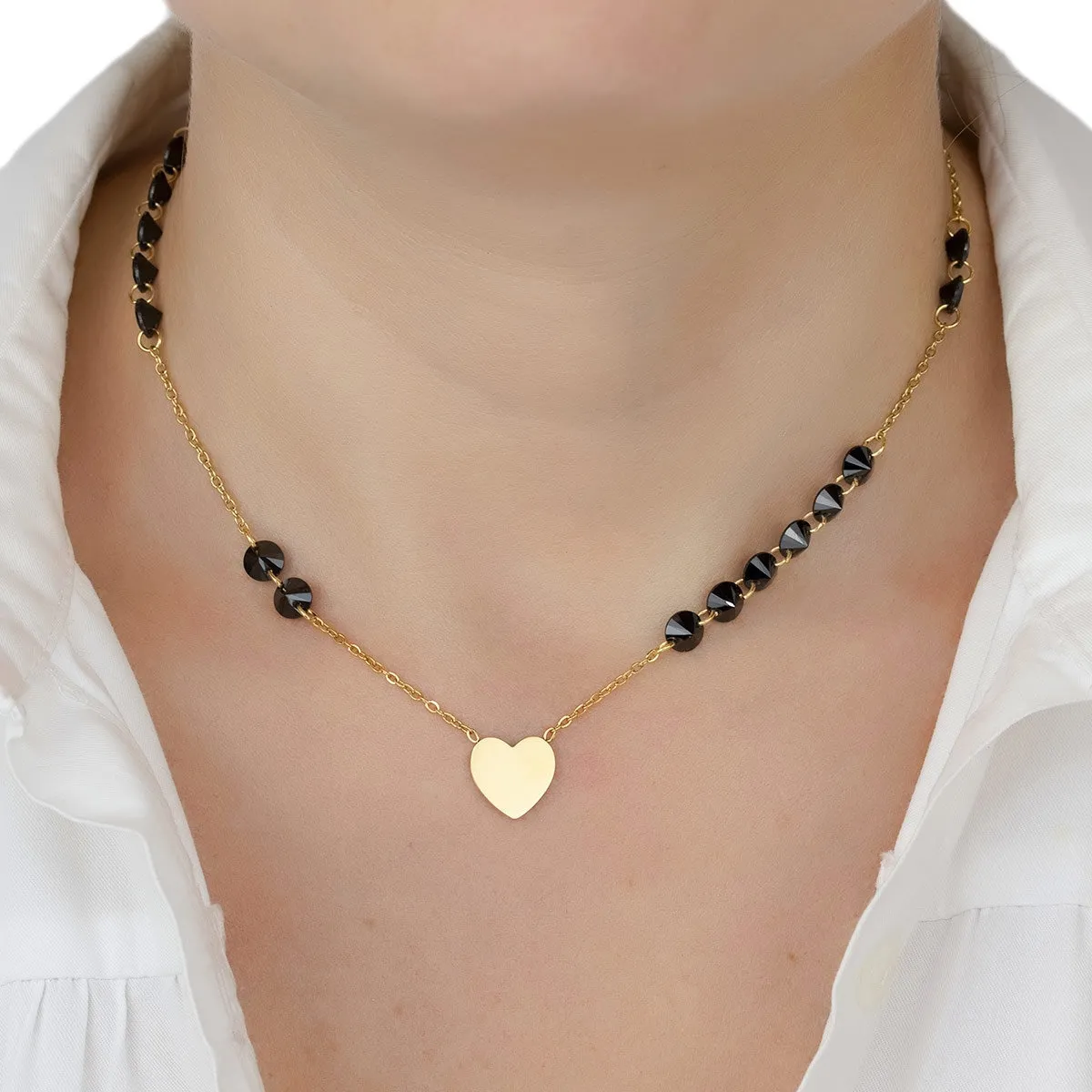 Naszyjnik SERCE koraliki STAL SZLACHETNA POZŁACANA