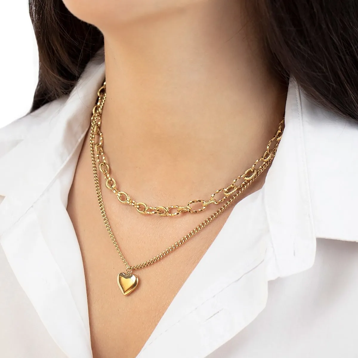 Naszyjnik podwójny STAL SZLACHETNA POZŁACANA gold