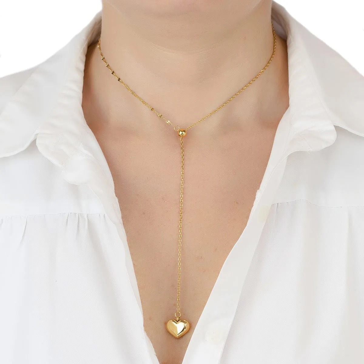 Naszyjnik SERCE długi STAL SZLACHETNA POZŁACANA
