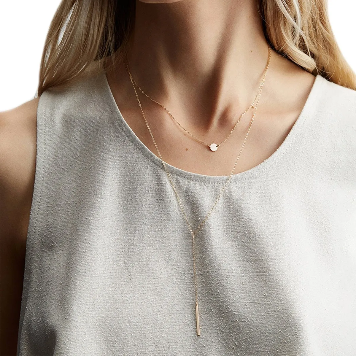 NASZYJNIK podwójny STAL SZLACHETNA POZŁACANA kółko
