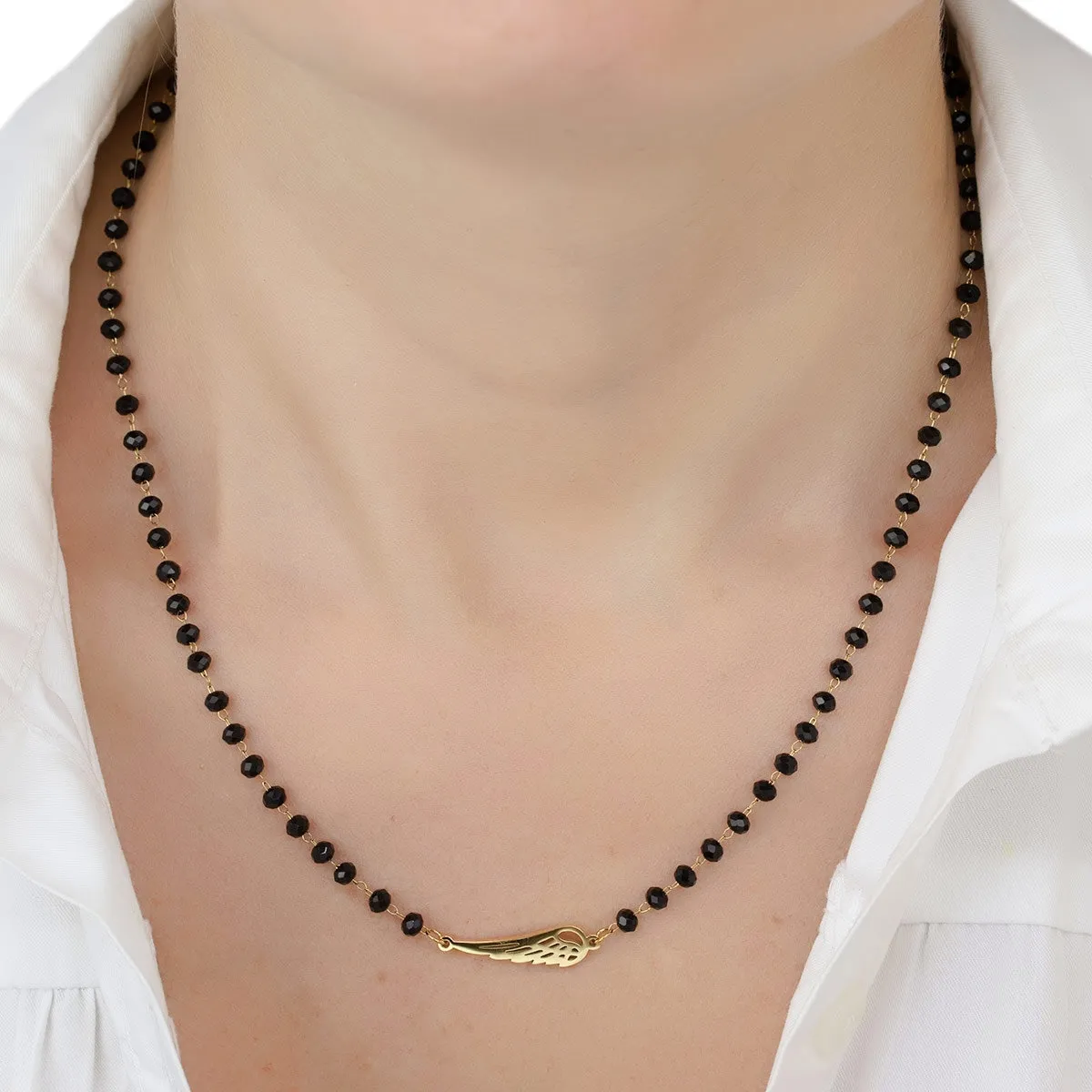 Naszyjnik pióro STAL SZLACHETNA POZŁACANA koraliki
