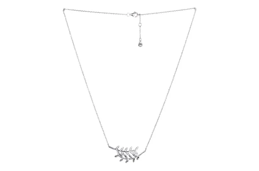 Rodowany srebrny naszyjnik listki z cyrkoniami